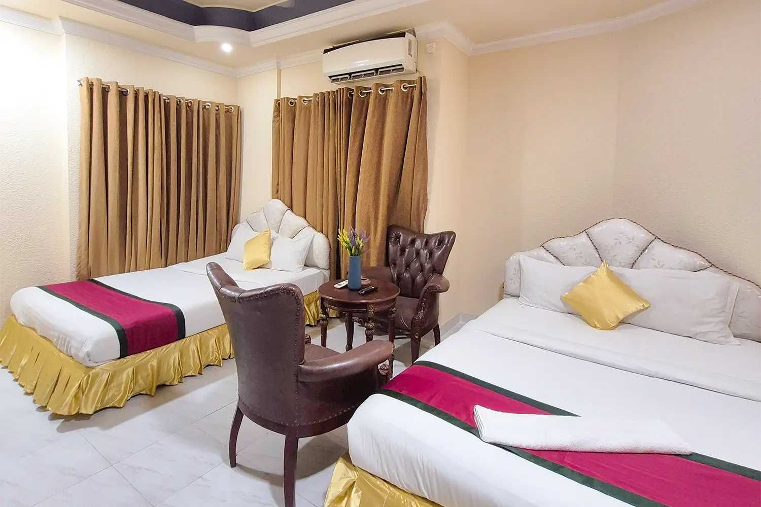 Welcome to our Standard Four Bed Room, perfect for families or groups looking for a comfortable and affordable stay. Enjoy spacious accommodations with cozy beds and soft linens, along with a delicious breakfast buffet to start your day right. Stay connected with free Wi-Fi and unwind with entertainment on the smart TV.